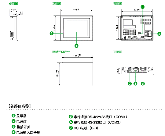 | 外部接口规格 | COM1(D-Sub9针 凹) | RS-422/485 起止同步式、数据长度:7,8位 奇偶性:偶数、奇数、无 停止位:1,2位 传输速度:4800,9600,19200,38400,76800,115200,187500*1bps |