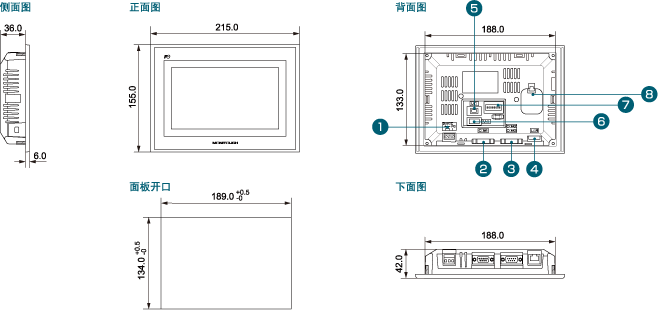 | 面板开口尺寸 W × H | 189.0 × 134.0(+0.5/-0)mm | ||||