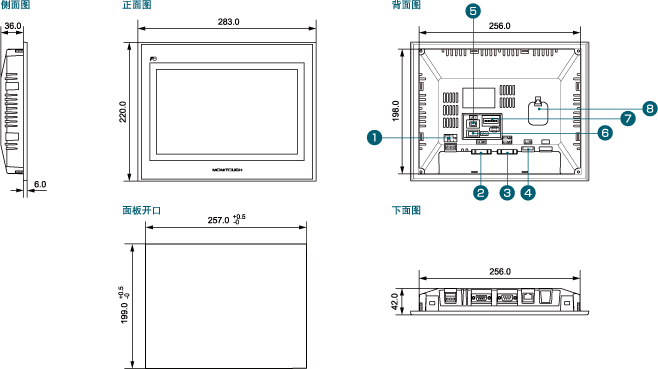 | 面板开口尺寸 W × H | 257.0 × 199.0(+0.5/-0) mm | ||||