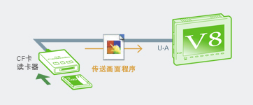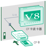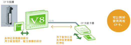 在CF卡内保存画面程序。不用带PC到现场,通过CF卡读卡器即可进行画面的传送与变更。