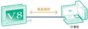 可以通过V8的USB端口用计算机进行梯形图程序的写入及监控。从而充分利用端口,实现更高速的梯形图传送。