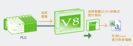 可对时刻变化的数据及异常变化进行采样,并可作为记录保存。可以CSV 格式保存,因此还可直接利用Excel 进行简单编辑。