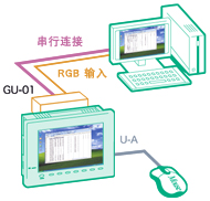 如果配置选件的RGB 输入单元"GU-01"、"GU-10"、"GU-11",就会在V8上显示PC画面。可以用USB 鼠标操作PC。