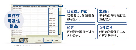 只要将操作日志阅读器的显示开关置于画面,即可显示操作日志阅读器,无需制作操作日志显示专用的画面。