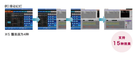 画面切换和覆盖层的显示/隐藏操作上,配置了15种※5多种效果的过渡功能。