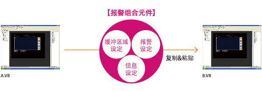 组合元件是元件单独可以运行的项目。因为元件自身已经包含了运行所必须的设定信息,因此挪用在其他画面时,用元件的复制&粘贴即可直接在其他画面程序上使用。