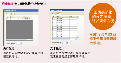 组合元件配置后,只需进行内存设定与文本设定。操作及其简单。