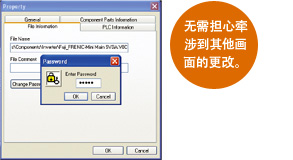 把具有特定功能的画面制作成组合元件,如果在制作成的组合元件内设定密码,将不能变更设定。组装制造商也可以放心使用。