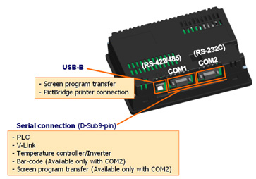 | External interface spec. | COM1(D-Sub 9-pin(F)) | RS-422/485; Asynchronous; Data length: 7bits, 8bits; Parity: even, odd, none; Stop bit: 1bit, 2bits Baud rate: 4800, 9600, 19200, 38400, 76800, 115200, 187500 *1 bps |