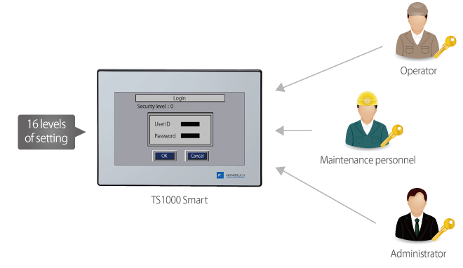 By setting a function limit according to the user level, a high-security environment can be established.