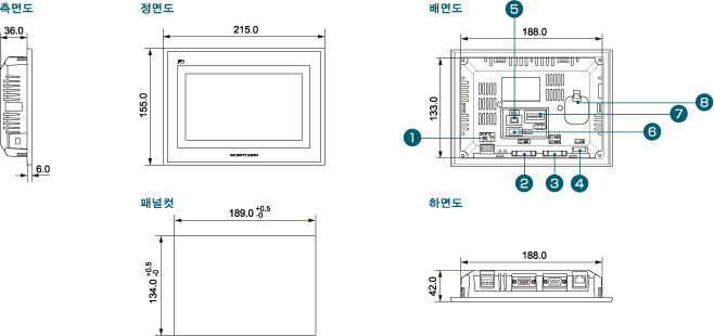 | 패널컷 치수 W×H | 189.0 × 134.0(+0.5/-0)mm | ||||