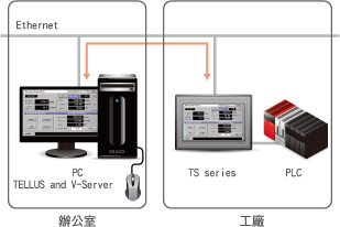 透過Ethernet連接,可將伺服器的畫面完整顯示於「TECHNOSHOT」上,並進行操作。