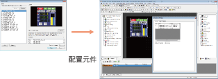 只需從所需功能及巨集的元件一覽中選擇配置,便能作成多種功能畫面。