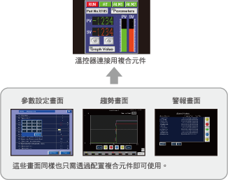 可簡單作成各種溫控器的控制器及參數設定畫面。