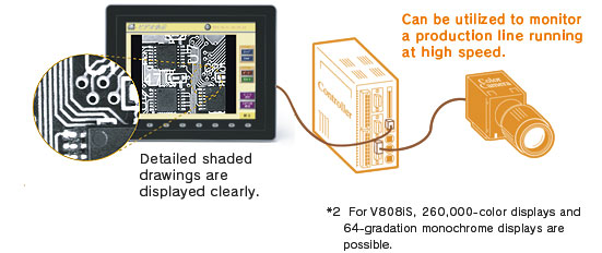 High-speed displaying of 30 frames per second is possible. Even displays for production of a short tact time can be made without any delay.