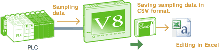 Production data and alarm history can be sampled and saved. Since the data is saved in CSV format, it can be easily edited in Excel.