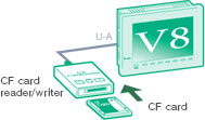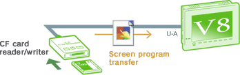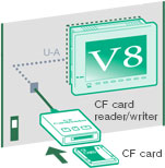 Because screen data can be saved in a CF card and read into V8 at a production site by means of a CF card reader/writer, there is no need to bring your PC.