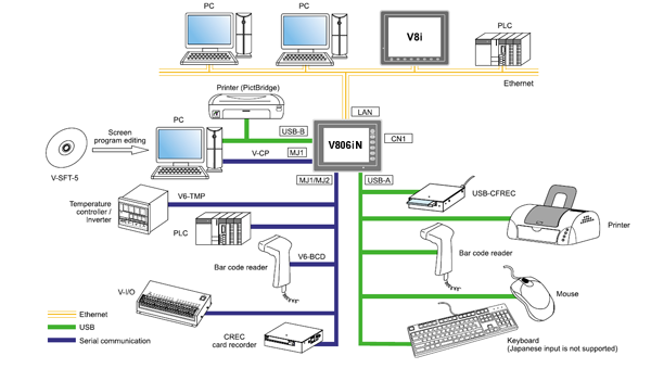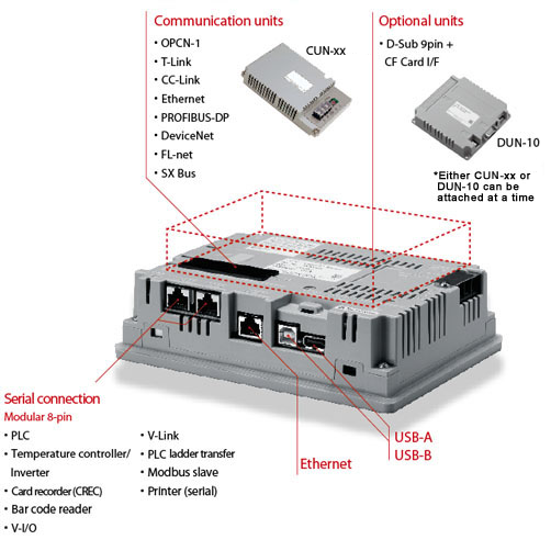| Modular 8 pin (MJ1/ MJ2) | RS-232C, RS-422/485 (two-wire system), Asynchronous type, Data length : 7,8 bits, Parity : even, odd, none, Stop bit : 1,2 bits, Baud rate : 4800, 9600, 19200, 38400, 57600, 76800, 115200bps | ||||||