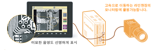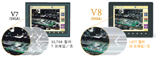 BLINK 없을 시 65,536 컬러, BLINK 시 32,768 컬러의 고화질 표시로 JPG와 BMP화상도 선명하게. 사진과 3D파트 등을 리얼하게 표시함으로써, 시인성이 향상. 작업자의 상황판단을 용이하게 합니다.