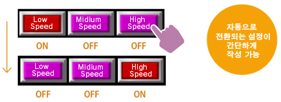 일정 시간 스위치를 계속 누르지 않으면 출력동작을 하지 않는 등, 스위치 실행 타이밍을 자유롭게 설정할 수 있습니다. 실수로 스위치를 눌렀을 때의 오작동 방지에 꼭 필요합니다.