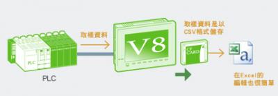 取樣可對時刻變化的資料及異常狀態的變化進行取樣,並作為記錄儲存。可以CSV 的格式儲存,因此能直接在Excel 上進行簡單的編輯。