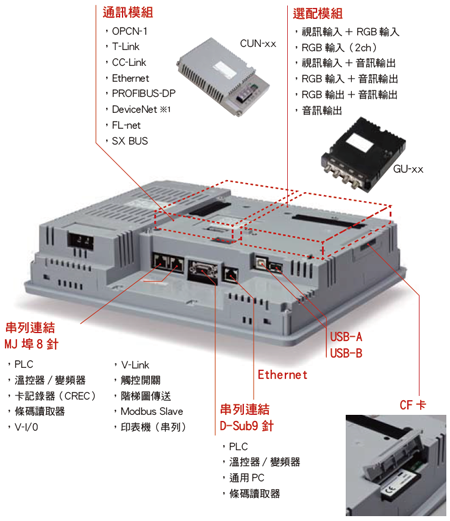 | 8針MJ埠(MJ1/MJ2) | RS-232C或RS-422/RS-485(2線式) 起止同步式 資料長: 7,8位元 檢查位元: 偶數,奇數,無 停止位元: 1,2位 傳送速度:4800,9600,19200,38400, 57600,76800,115200bps | |