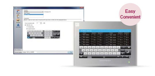 A versatile keyboard for inputting upper and lower case letters and numbers is available for easy setting. Select the system keyboard from the set menu.