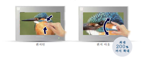 화면상에서 두 손가락을 눌러 펼치면 최대200%까지 확대가능※2. 확대한 화면은 두 손가락으로 오므려 축소할 수 있습니다.
