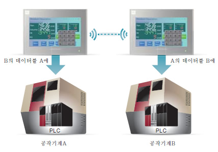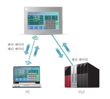 PC와 V9시리즈를 무선 LAN 으로 접속하여, 화면 데이터 전송이나, V9시리즈에 접속된 PLC에 래더전송을 할 수가 있습 니다. 케이블을 접속할 필요가 없으므로, 현장에서 디버그시 작업도 간단하게 할 수 있습니다.