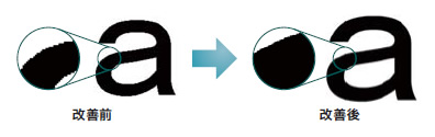 將TrueType字體加到標準字體之中。以消除鋸齒(anti-aliasing)的處理可順利地進行顯示。另外,與Windows字體相比可控制容量,使用時不用在意畫面容量。