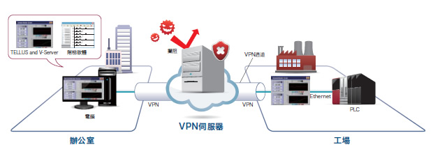 使用公用網絡且配備製作虛擬的專用線之VPN功能。以低成本便可簡單實現更安全的遠端監視。