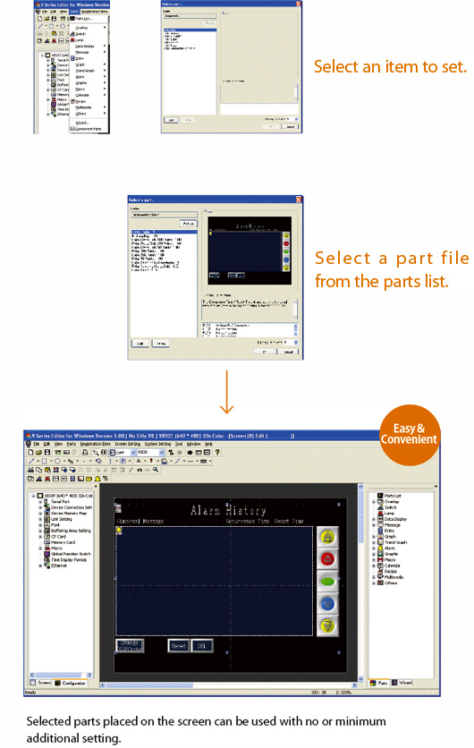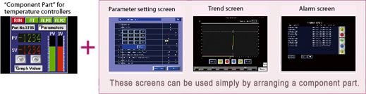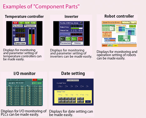 "Component Parts" with various functions are availlable. They can be selected from the parts list according to your purpose to configure displays promptly.